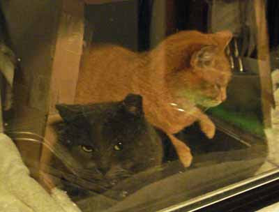 When I raised the garage door last night I saw Jellico retreat from the barn's cathouse via the cat flap. Apparently he and Tommie can coexist somewhat amicably when neither food nor wimmin are nearby.I put the heater on in the cats' portion of the barn last night. It doesn't do much but it might help a little. I usually don't do that unless the outside temperature falls below 15. Last night was 16. Warmer tonight and the next few days so I'll turn it off today.